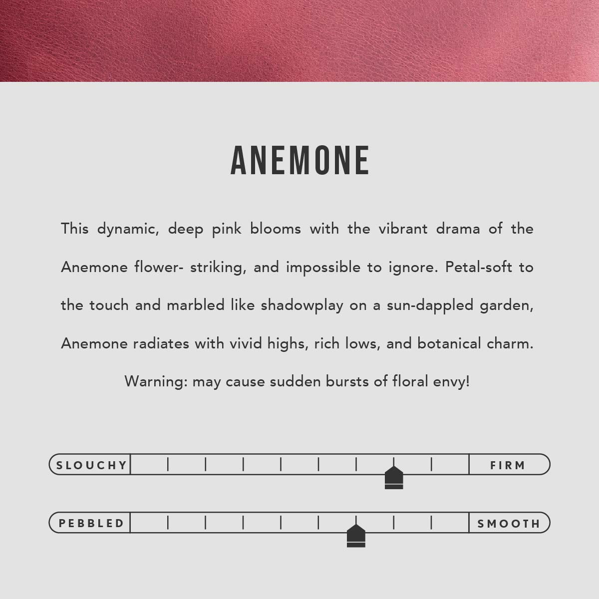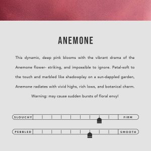 | Color | Anemone, Anjou, Aruba, Astro Blue, Berry Good, Black, Bone, Champagne, Coldbrew, Cosmo, Dahlia, Durango, Foxglove, Grizzly, Harbor, Hello Yellow, Honey, Joni Blue, Key West, Lagoon, Meadow, Naples, Nutmeg, Pebbled–black, Pink Suede, Plum, Ruby, Succulent, Timber, Turmeric, Watermelon, Wisteria |