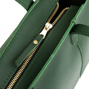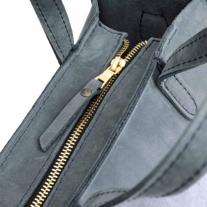- Stitched carrying handles made from double-layered leather