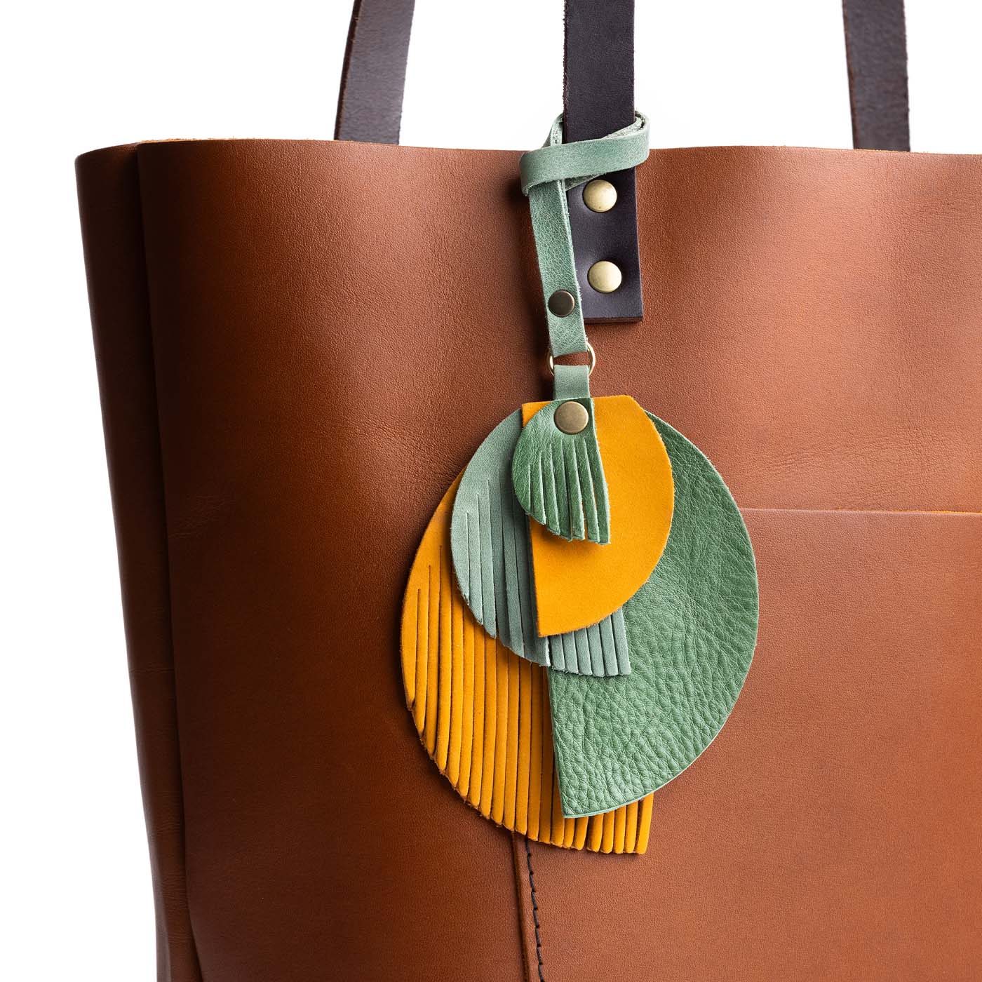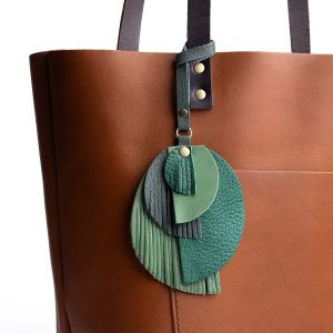 - Intricately cut leather shapes and fringe add an interesting textural element