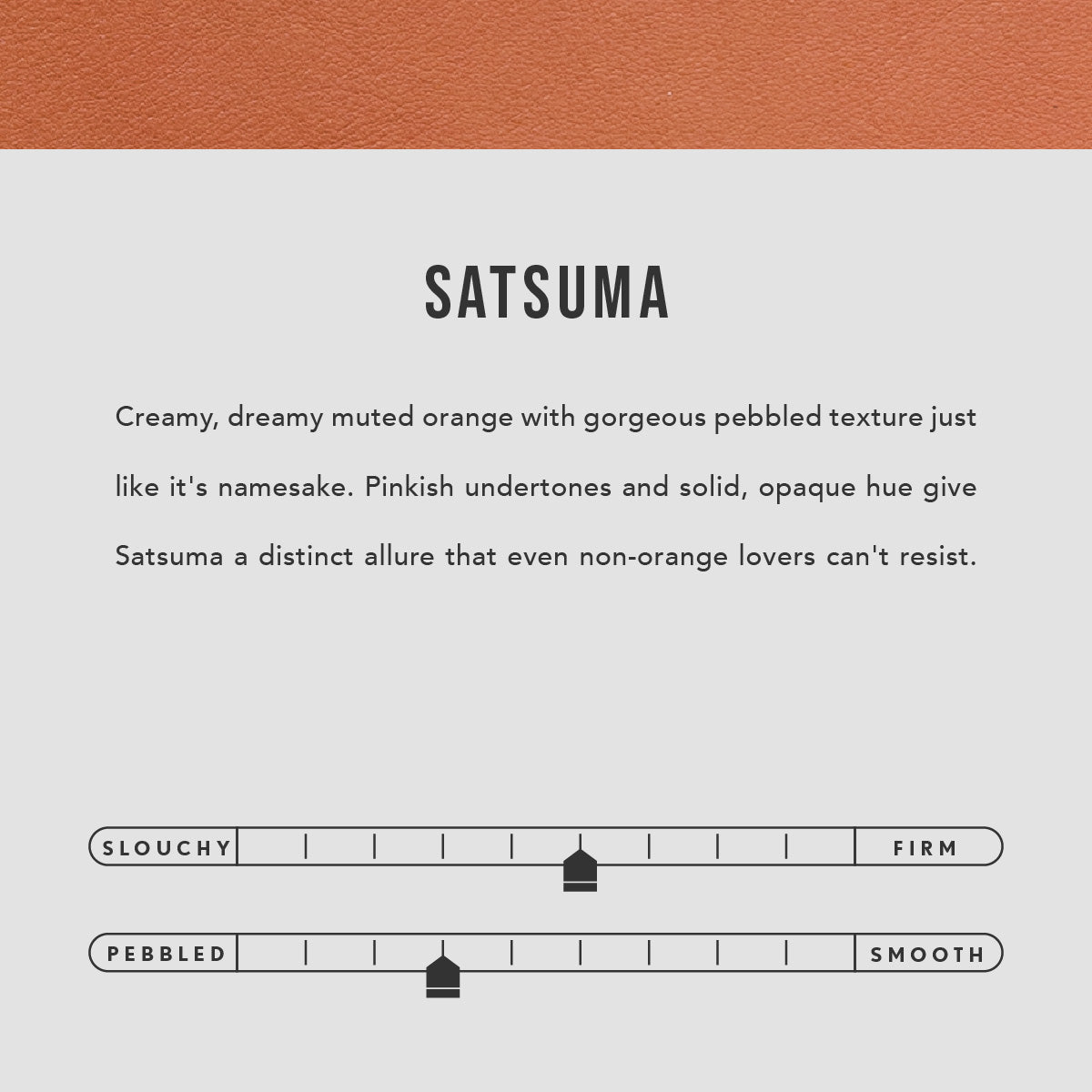 | Color | Baja, Black, Cabo, Canyon, Cobalt, Cognac, Coldbrew, Dahlia, Deep Water, Dream, Empire, Forest Green, Grizzly, Honey, Koi, Masquerade, Meadow, Nutmeg, Orchid, Peacock, Pebbled–black, Plum, Satsuma, Succulent, Sugar, Sugar Snap, Turmeric, Turquoise |